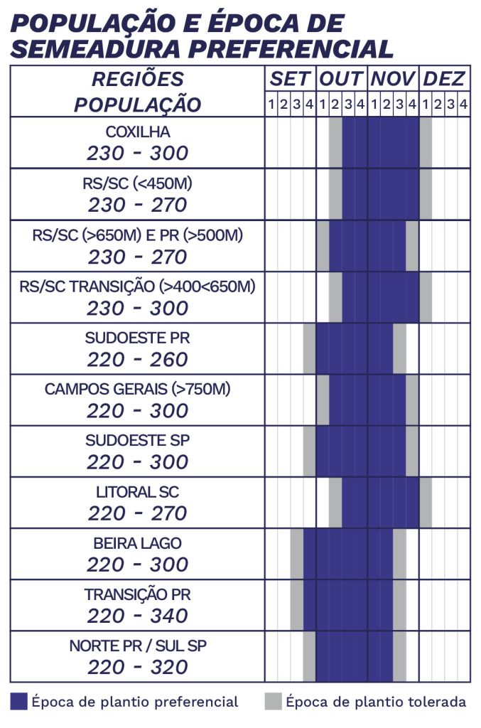| Época de Semeadura | De acordo com o vazio sanitário indicado para cada região |