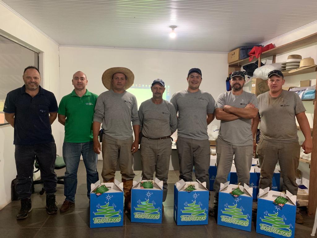 Há mais de 20 anos o Grupo Strobel presenteia os seus colaboradores com cestas de natal e presentes às crianças (filhos dos colaboradores) como forma de reconhecer e agradecer os esforços e a dedicação de cada um. Neste ano, a ação teve um sentimento especial. Em cada uma das propriedades sendo elas, Fazenda da Taipa (berço da produção da Strobel Sementes), Fazenda Guarita, Fazenda Santa Isabel e no escritório (centro administrativo) foi preparado um momento de homenagem em que os diretores agradeceram aos colaboradores pelas contribuições neste ano e apresentaram o vídeo institucional da Sementeira. A atividade ocorreu durante a última semana.